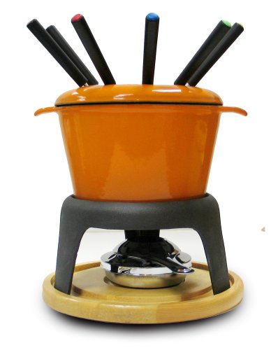 Paylesscookware 12 Piece Enamel Cast Iron Orange Fondue Set Feature